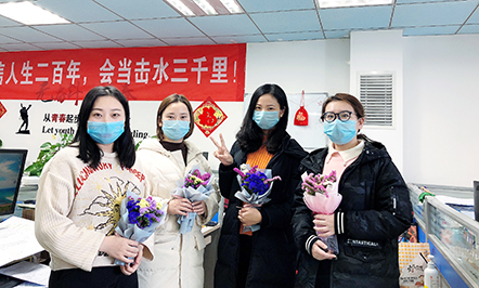3月7日一大早,當(dāng)朝霞的女神們剛剛走進(jìn)公司,迎面而來(lái)的是一捧鮮花、一盒巧克力、一箱水果。而男同胞們只能羨慕的搖頭,默默擦肩而過(guò)。