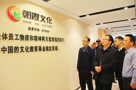 代表團(tuán)實(shí)地參觀了朝霞文化的辦公環(huán)境,了解了朝霞文化的發(fā)展歷程、企業(yè)文化、經(jīng)營現(xiàn)狀以及未來發(fā)展規(guī)劃。視察中,代表團(tuán)對(duì)朝霞文化目前所取得的成績(jī)和未來規(guī)劃表示充分地肯定,同時(shí)也對(duì)朝霞文化的未來給予勉勵(lì)和期望。