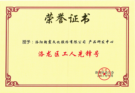 本次表彰大會上,洛陽朝霞文化股份有限公司產(chǎn)品研發(fā)中心被授予“洛龍區(qū)工人先鋒號” 榮譽稱號,董事長張振民同志被授予“2022年度洛龍區(qū)五一勞動獎?wù)隆薄?/span>