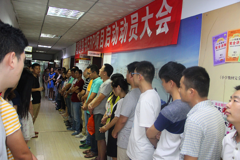 朝霞圖書總經(jīng)理劉紅橋先生發(fā)表動員講話。他說ERP系統(tǒng)是連接我們發(fā)行、物流、財務(wù)、編排的信息管理系統(tǒng),ERP系統(tǒng)的切入,不僅會實現(xiàn)公司數(shù)據(jù)信息共享,而且能使每一位員工都參與其中,成為數(shù)據(jù)的節(jié)點,通過數(shù)據(jù)的分析與統(tǒng)計,將會使我們的工作效率大大提升!所以朝霞圖書的每一位員工都必須引起重視,全力配合ERP系統(tǒng)在公司的上線計劃,只有重視、配合;配合、重視,ERP系統(tǒng)才能真正地在我們公司落地生根,開花結(jié)果,發(fā)揮它應(yīng)有的作用!