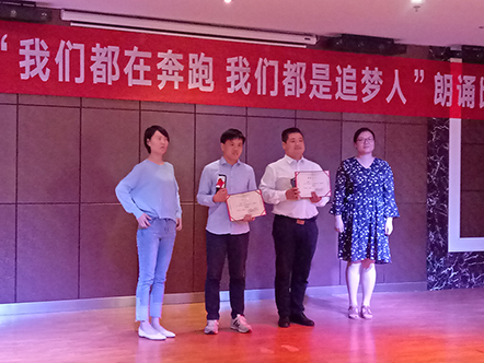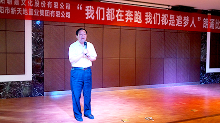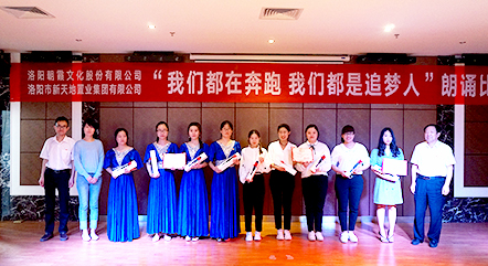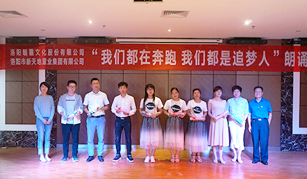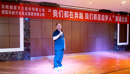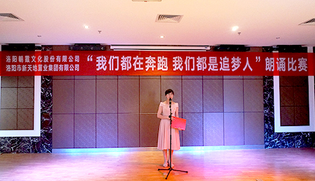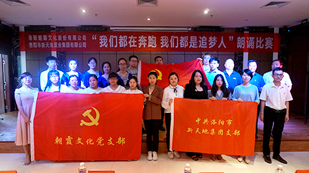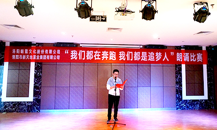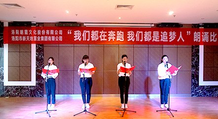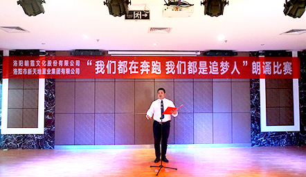 5月22日,中共洛陽市新天地置業(yè)集團支部委員會和中共洛陽朝霞文化股份有限公司支部委員會聯(lián)合舉辦的“我們都在奔跑,我們都是追夢人”朗誦比賽決賽,在新天地集團12樓多功能會議廳正式拉開帷幕!此次比賽在兩個單位預賽選拔的基礎上,共推出14組參賽選手參加決賽,雙方各出三名評委,新天地集團黨支部書記許景合、朝霞文化黨支部組織委員趙林親臨比賽現(xiàn)場并擔當評委,兩個單位的黨員、干部以及公司員工共100余人參加活動。