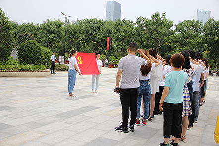 隨后,在黨旗的引領(lǐng)下,黨員們走上正大廣場,面對黨旗,黨員們再一次舉起自己的右手,莊嚴(yán)宣誓。 宣誓時,黨員們激情澎湃,聲音洪亮,久久回蕩。宣誓是一種形式,更是一種激勵,一種鞭策,一種對信仰的強化,激勵我們的黨員努力向前!