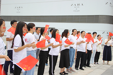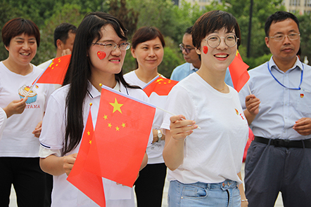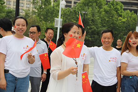 在唱紅歌《我和我的祖國》時,參加活動的黨員、志愿者們揮動小國旗、臉頰上心型國旗,相映成趣,吸引過往的群眾參與其中。歌聲激蕩,紅歌的演繹,就是對革命傳統(tǒng)的集體重溫,就是喚起我們的紅色記憶,珍惜當(dāng)下來之不易的幸福生活。