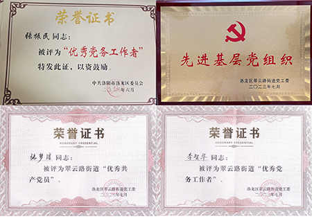 在洛龍區(qū)迎七一表彰大會上,支部書記張振民同志榮獲“洛龍區(qū)優(yōu)秀黨務工作者”榮譽稱號;在翠云黨工委慶祝建黨102周年暨“兩優(yōu)一先”表彰大會上,朝霞文化黨支部榮獲“先進基層黨組織”榮譽稱號,支部委員李智華同志榮獲“優(yōu)秀黨務工作者”榮譽稱號,支部黨員張夢潔同志榮獲“優(yōu)秀共產黨員”榮譽稱號,以上榮譽既是對支部及支部黨員同志當下工作的認可,更是對未來提出的要求,指引著支部及支部黨員同志再接再厲,再創(chuàng)佳績。