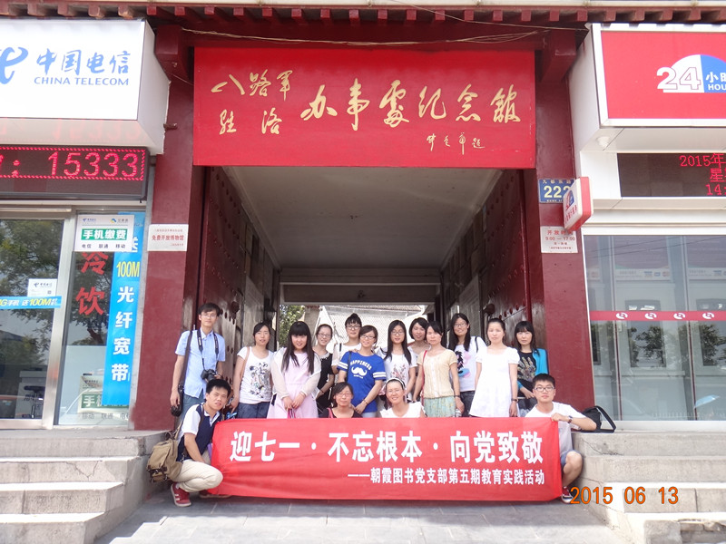 2015年6月13日下午,為迎接建黨94周年,朝霞圖書黨支部舉辦“迎七一?不忘根本?向黨致敬”主題活動(dòng),全體黨員走進(jìn)洛八辦,以參觀革命遺址的方式,回顧那段戰(zhàn)火紛飛的崢嶸歲月,緬懷、紀(jì)念那些為新中國成立拋頭顱、灑熱血的革命先烈,向先烈致敬,向黨致敬!